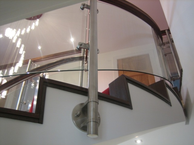 This section of our website highlights a side of our business serving the construction industry. We provide custom designed and fitted systems to specification directly and indirectly to various companies, individuals and to the construction industry as a whole. Check out the individual projects for more photos. We use and combine a variety of materials including Curved or Straight Glass, Stainless Steel & Hardwoods, allowing endless possibilities limited only by ones imagination. While we are limited by client confidentiality to what we can publish, there are a handful of examples below for your perusal and feel free to click on the sub-tabs for some individual projects approved for public viewing.