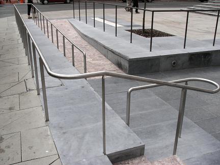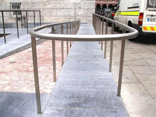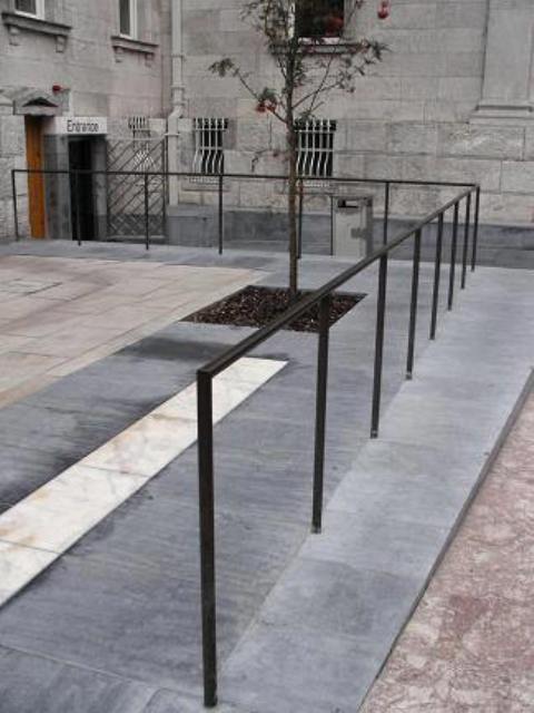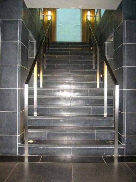 All of the stainless steel external rails on this project were from grade 316 stainless steel. The ramp rails were installed with anti-skateboard buttons at 1m intervals. Some of the external rails were manufactured from bronze tube and later weathered to a dark brown colour. The internal steps leading from the basement to the ground floor were manufactured from heavy stainless steel flat bar with a grit polished finish throughout. The glass entrance doors at basement level were secured with the installation of the ‘trellis’ type security grilles manufactured from 316 grade stainless steel with a grit polished finish.